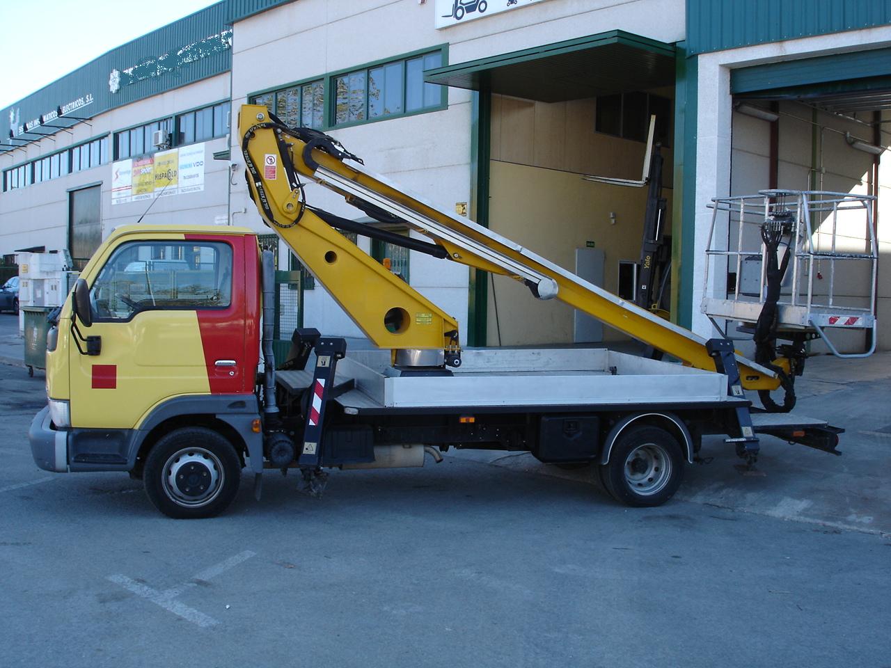 Camion cesta telescopico de 14 metros de altura de trabajo, con gatos estabilizadores, pocos km, buen estado, matriculado en España, certificado CE, varias unidades.