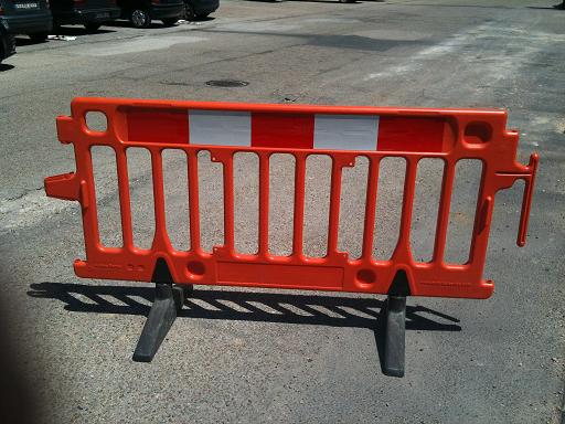 VALLA DE CONTENCION DE PUBLICO Y SEÑALIZACION DE PLASTICO CON REFLECTANTE, PESO REDUCIDO, MAXIMA ESTABILIDAD, FACIL ANCLAJE, PRECIO 46 € UNIDAD, PEDIDO MINIMO 50 UNIDADES