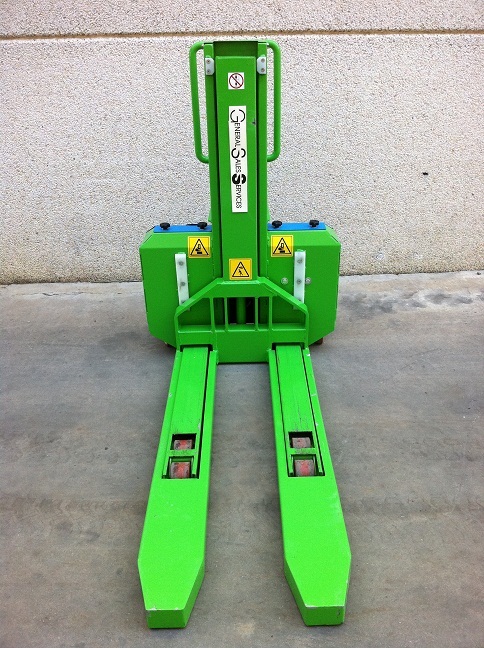 Apilador autocargable, este nuevo apilador autocargable un solo operario es capad de ELEVAR Y DESCENDER un palets de 600 kg. a una altura de 750 mm. El diseño del apilador autocargable es de unas medidas mi reducidas, de largo 1.600 mm. ancho 770 mm. alto 1.200 mm. y con un peso total de 225 kg. certificado C.E.