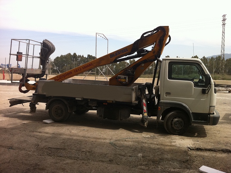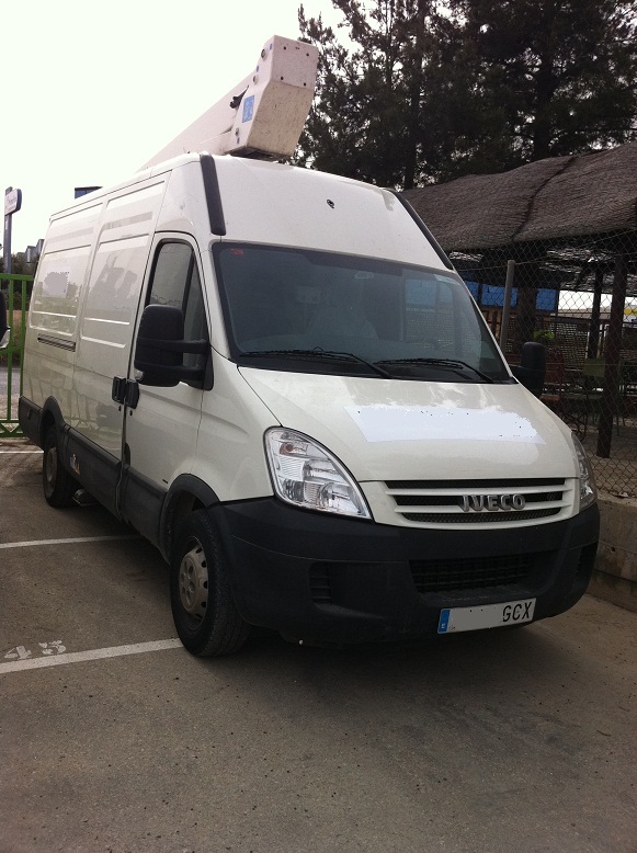 Furgon cesta telescopico de 12 metros de altura de trabajo, con gatos estabilizadores, pocos km, buen estado, matriculado en España, certificado CE, varias unidades.