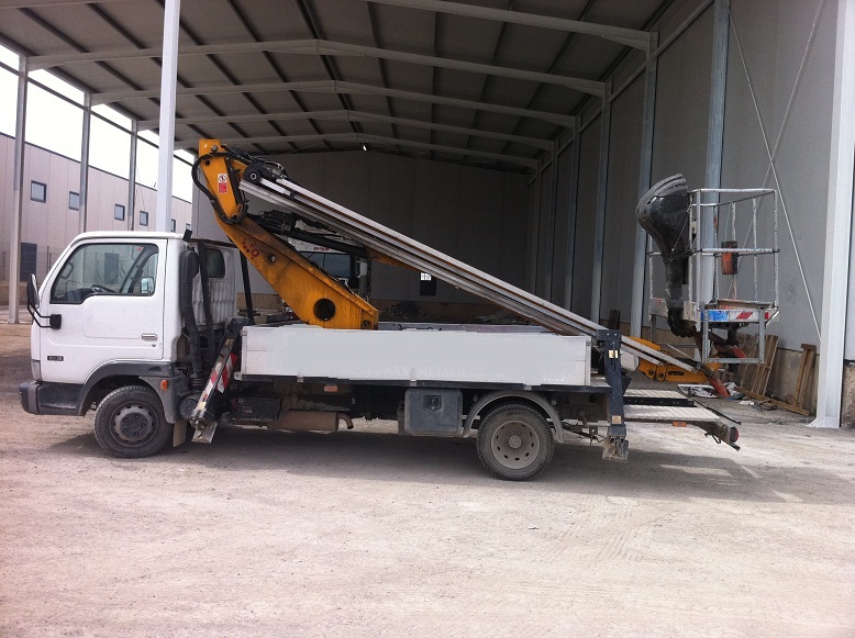 Camion cesta telescopico de 18 metros de altura de trabajo, con gatos estabilizadores, alcance lateral de 12 metros, pocos km, buen estado, matriculado en España, certificado CE, varias unidades.