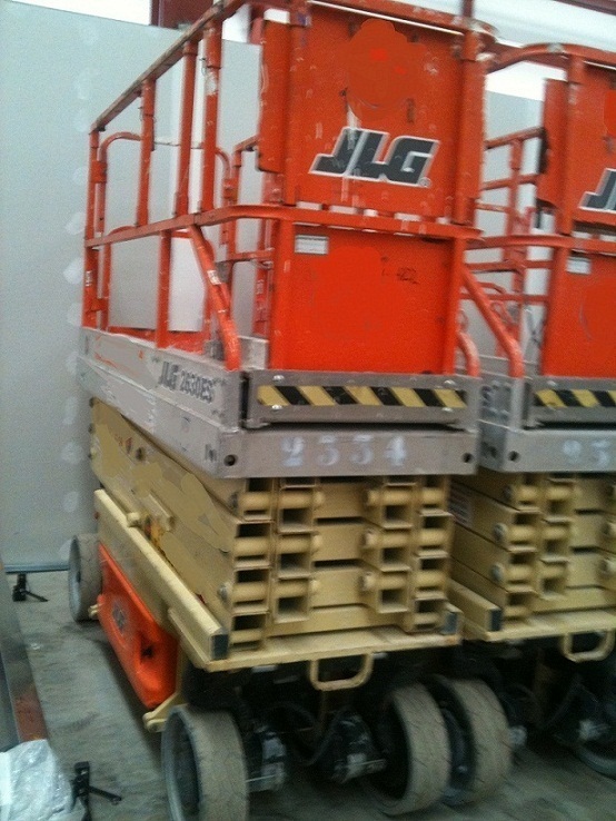 PLATAFORMA ELEVADORA DE TIJERA DE 10 METROS DE ALTURA DE TRABAJO, RUEDAS NO MARCANTES, ANCHURA TOTAL 0,76, CERTIFICADO CE, MAQUINA REVISADA, PINTADA Y EN PERFECTO ESTADO, VARIAS UNIDADES