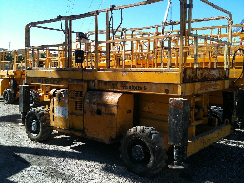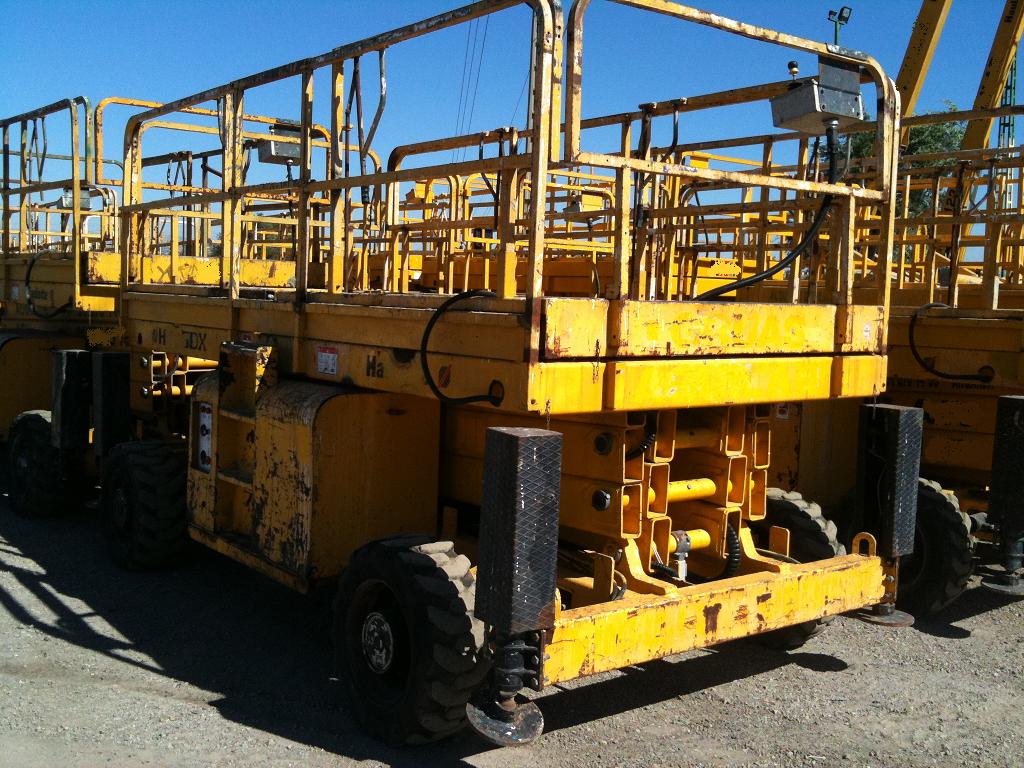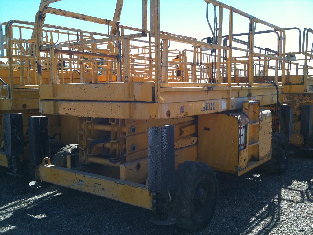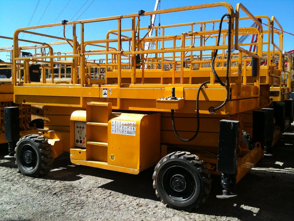 PLATAFORMA ELEVADORA DE TIJERA DE 12 METROS DE ALTURA DE TRABAJO, 4 X 4, CON GATOS ESTABILIZADORES, DOBLE EXTENSION, BUEN ESTADO, POCAS HORAS, VARIAS UNIDADES